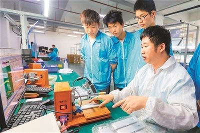 江西省吉安市峽江縣采取“校企合作”等方式發(fā)展職業(yè)教育,有針對性地培養(yǎng)企業(yè)需要的專業(yè)技術(shù)人才,拓寬學(xué)生就業(yè)渠道。圖為近日,峽江縣職業(yè)中專的學(xué)生在學(xué)習(xí)鋰電池檢測技術(shù)。