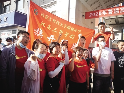 為學(xué)生送考是包四中的傳統(tǒng)。當(dāng)日7時許,身著“包四必勝”紅色T恤的高三年級組長楊文亮早早來到考場為學(xué)生送考。這名任教20年的教師已經(jīng)歷過6次高考,每一次他都要親自將學(xué)生送上考場。與他同來的十幾名包四中教師或與學(xué)生擊掌,或向他們打著必勝的手勢,激勵大家沉著應(yīng)考,考出水平。楊文亮說:“在每場考試結(jié)束前,老師們都會提前來到現(xiàn)場,等著同學(xué)們出來,給他們打氣,幫助他們調(diào)整情緒。有時學(xué)生會說考試題目比較難,這時老師們就會告訴學(xué)生不要過分焦慮,正常發(fā)揮出自己的實力就好,題難不是一人難,每名考生都會面對同樣的難題。通過這樣的交流為考生進行心理疏導(dǎo),消除考生緊張焦慮的情緒,繼續(xù)為接下來的考試做好準備。”(策劃趙永峰 記者李碩 霍曉霞 萬菲 實習(xí)生許昕元 通訊員李瞳)