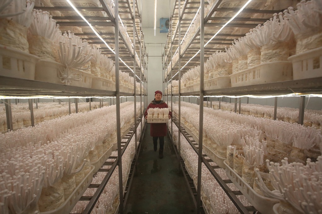 農民在寧夏閩寧鎮(zhèn)雙孢菇栽培示范基地采摘蘑菇(2020年3月18日攝)。 新華社記者 王鵬 攝