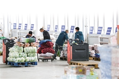 疫情防控期間,為保障呼和浩特市民生活物資需求,首府積極組織貨源,優(yōu)化配送方式,全力加強市場供給。目前,城區(qū)多家線上平臺、大型超市、農(nóng)貿(mào)市場商品品種齊全、供應(yīng)充足。10月10日,記者在家家悅內(nèi)蒙古生鮮倉看到,為了保證市民線上下單的及時配送,工作人員正在線下忙碌。
