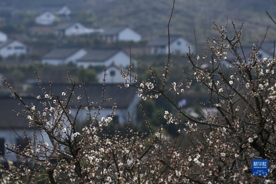 當日,西塞山第五屆梅花節(jié)在浙江省湖州市吳興西塞山旅游度假區(qū)原鄉(xiāng)小鎮(zhèn)景區(qū)開幕,盛開的梅花吸引不少游客前來觀賞。