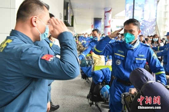 2月19日,廣東省廣州市,藍(lán)天救援隊赴土耳其隊員抵達(dá)廣州白云機(jī)場。當(dāng)日,100余名藍(lán)天救援隊赴土耳其隊員搭乘CZ8066航班返抵廣州。中新社記者 陳驥旻 攝
