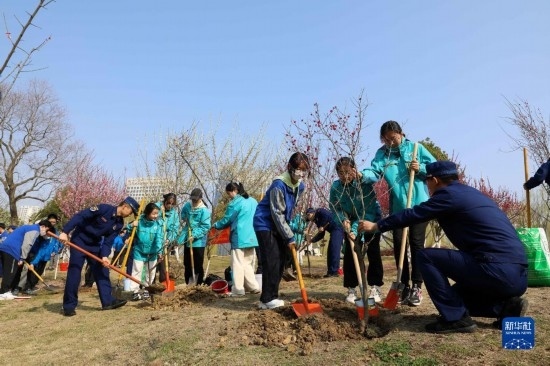 當(dāng)日,合肥市包河區(qū)濱湖世紀(jì)社區(qū)聯(lián)合轄區(qū)消防工作人員在雨水公園開展“手牽手護(hù)綠一起行”義務(wù)植樹活動(dòng),綠化家園。