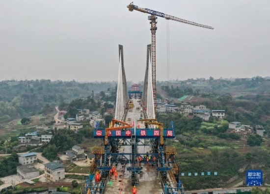 當日,由中鐵四局承建的渝昆高鐵川渝段控制性工程瀘州沱江特大橋主跨順利合龍,為全線順利貫通打下堅實基礎。