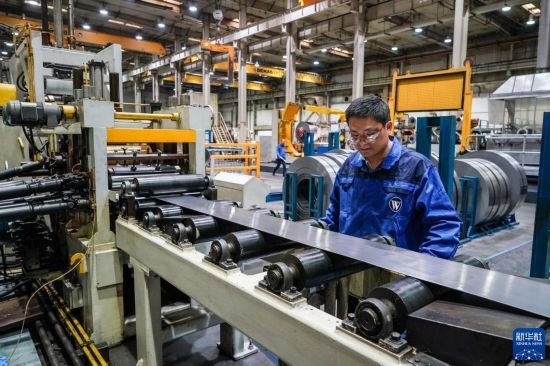 工人在位于太倉市高新區(qū)的威爾斯新材料(太倉)有限公司生產(chǎn)車間內(nèi)進(jìn)行加工作業(yè)(3月16日攝)。