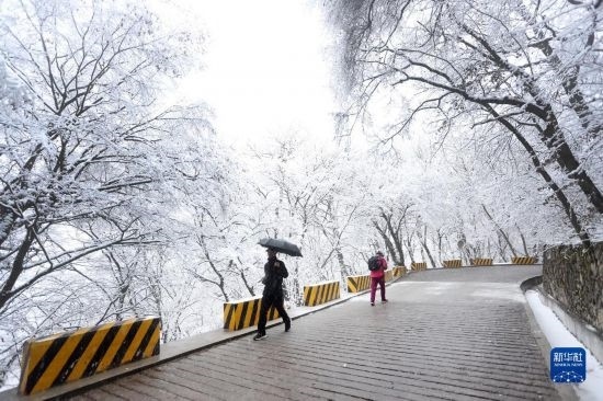 受冷空氣影響,位于甘肅省平?jīng)鍪械尼轻忌骄皡^(qū)迎來降雪,景色如畫。