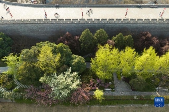 近日,陜西西安明城墻旁春意漸濃,吸引不少市民游客前來踏青。