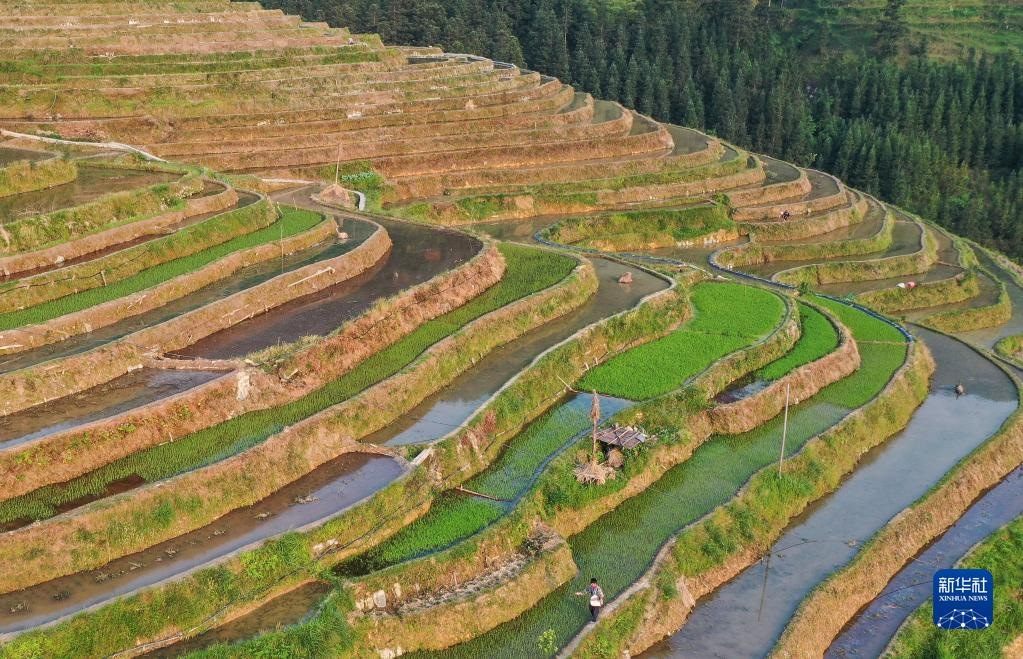 5月6日拍攝的貴州省從江縣加榜鄉(xiāng)加車村的梯田(無人機(jī)照片)。