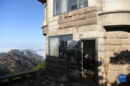 這是5月8日拍攝的黃山風(fēng)景區(qū)平天矼瞭望哨(無人機(jī)照片)。