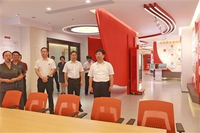 廣西高院黨組書記、院長黃海龍(右一)在桂林中院黨建文化活動中心調研。