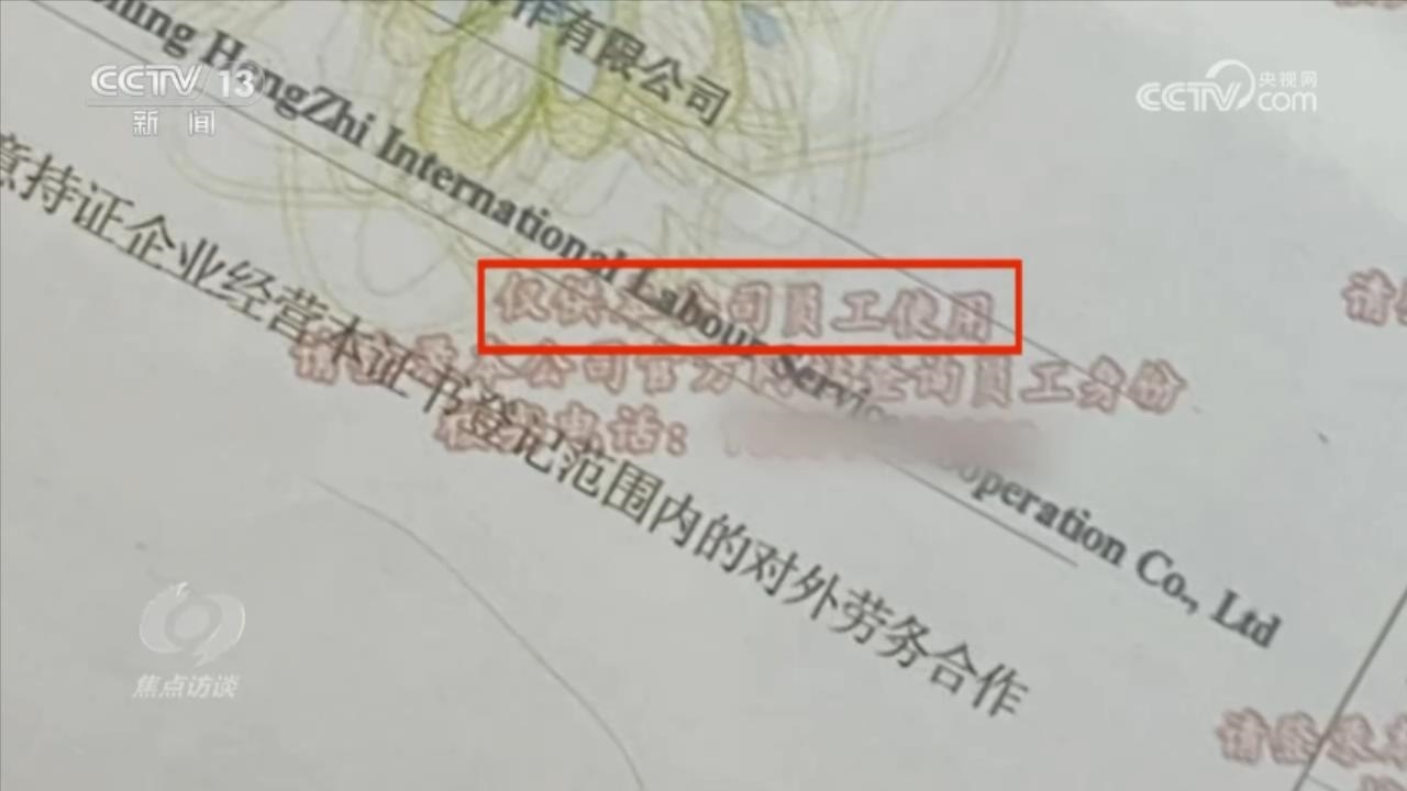 在辦公室擺放的證件是一家名為遼寧恒志國際勞務合作有限公司的對外勞務合作經營資格證。為了防止別人冒用自己的資質,在證件上明確寫著“僅供本公司員工使用”,還印上了公司的核實電話。按照這個號碼,記者聯(lián)系了遼寧恒志國際勞務合作有限公司,公司負責人卻表示不認識眾國國際。