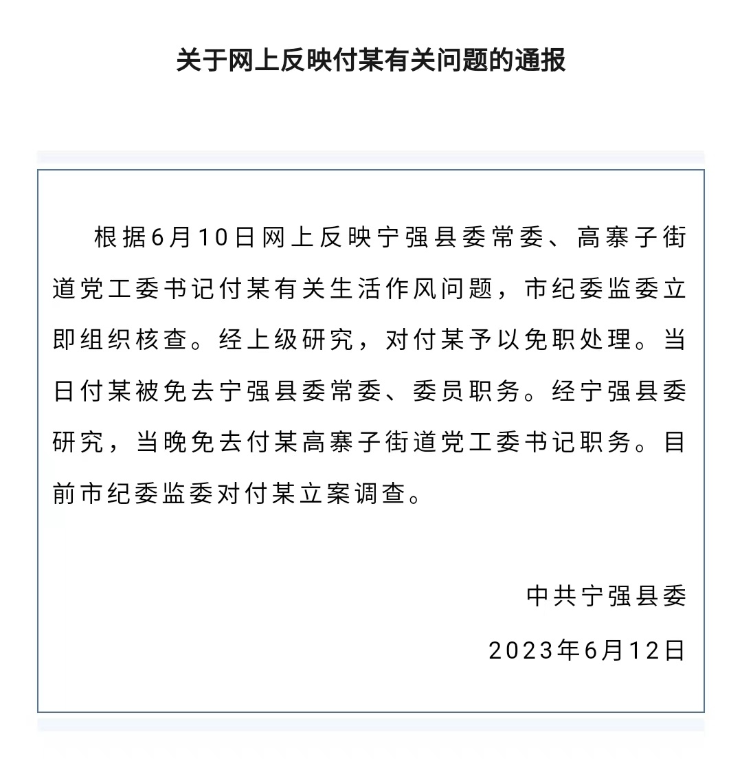 ·官員被舉報與女同事有不正當(dāng)關(guān)系,陜西寧強:免職,立案調(diào)查。