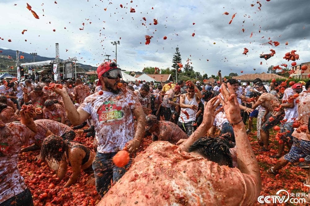 當(dāng)?shù)貢r間2023年6月11日,哥倫比亞蘇塔馬錢,人們參加一年一度的“西紅柿大戰(zhàn)”。今年的慶典是解除新冠限制以來的第一次。