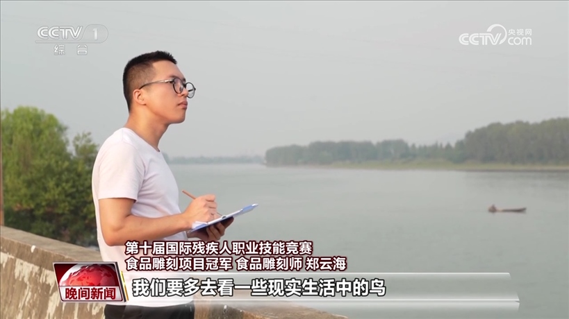 一雙巧手,可以雕刻出栩栩如生、楚楚動人的荷花、白鴿、火炬,也能雕刻出多彩的人生。鄭云海愛自己所愛,多年如一日,拼命地練,終于成為世界冠軍。他的人生就像一件件作品,初見盡是平淡平凡,但等下足了功夫,就能成就驚奇驚艷。從平凡到驚艷,有故事,更有詩意。自尊、自信、自強、自立,用頑強奮斗把美好夢想變成現(xiàn)實,就是對青春與時代最詩意的告白。