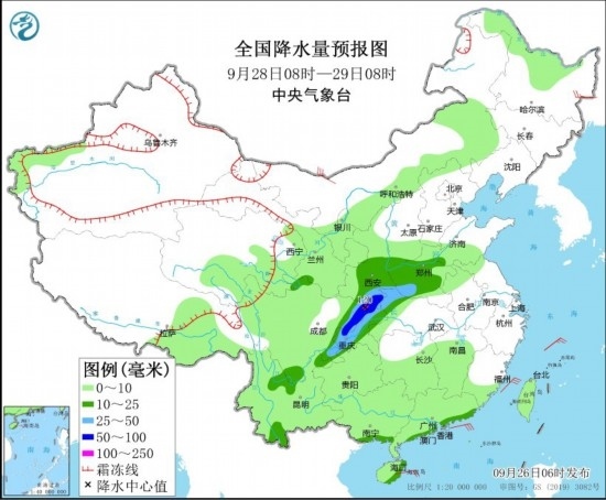 全國降水量預(yù)報圖(9月26日08時-27日08時) 圖片來源:中央氣象臺網(wǎng)站