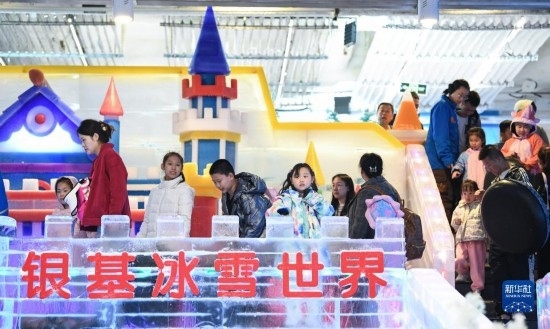 7月8日,游客在新密市銀基國際旅游度假區(qū)冰雪世界內(nèi)游玩。