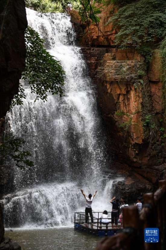 7月9日,游客在新密市伏羲山大峽谷內(nèi)游玩。