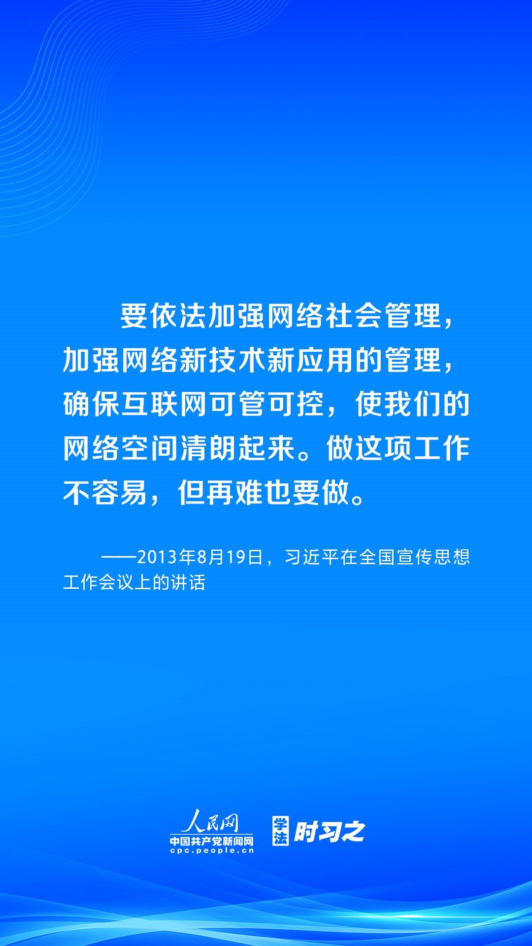 營造風(fēng)清氣正的網(wǎng)絡(luò)空間,離不開法治手段的保障。黨的十八大以來,習(xí)近平總書記高度重視網(wǎng)絡(luò)法治工作,強調(diào)要堅持依法治網(wǎng)、依法辦網(wǎng)、依法上網(wǎng),讓互聯(lián)網(wǎng)在法治軌道上健康運行。