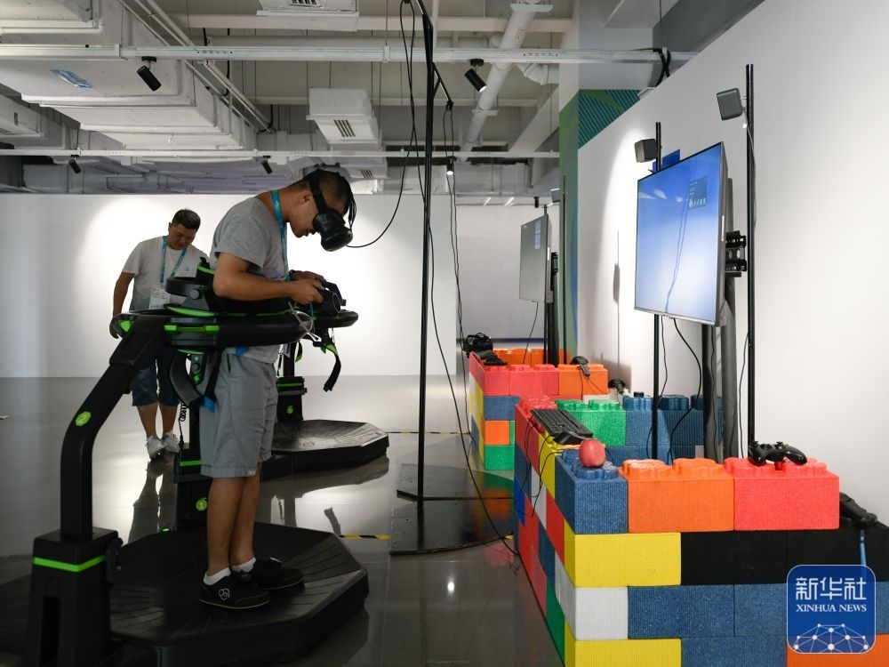 ↑7月14日,媒體工作人員在成都大運(yùn)會(huì)主媒體中心休閑娛樂(lè)區(qū)內(nèi)體驗(yàn)VR游戲。新華社記者 胥冰潔 攝