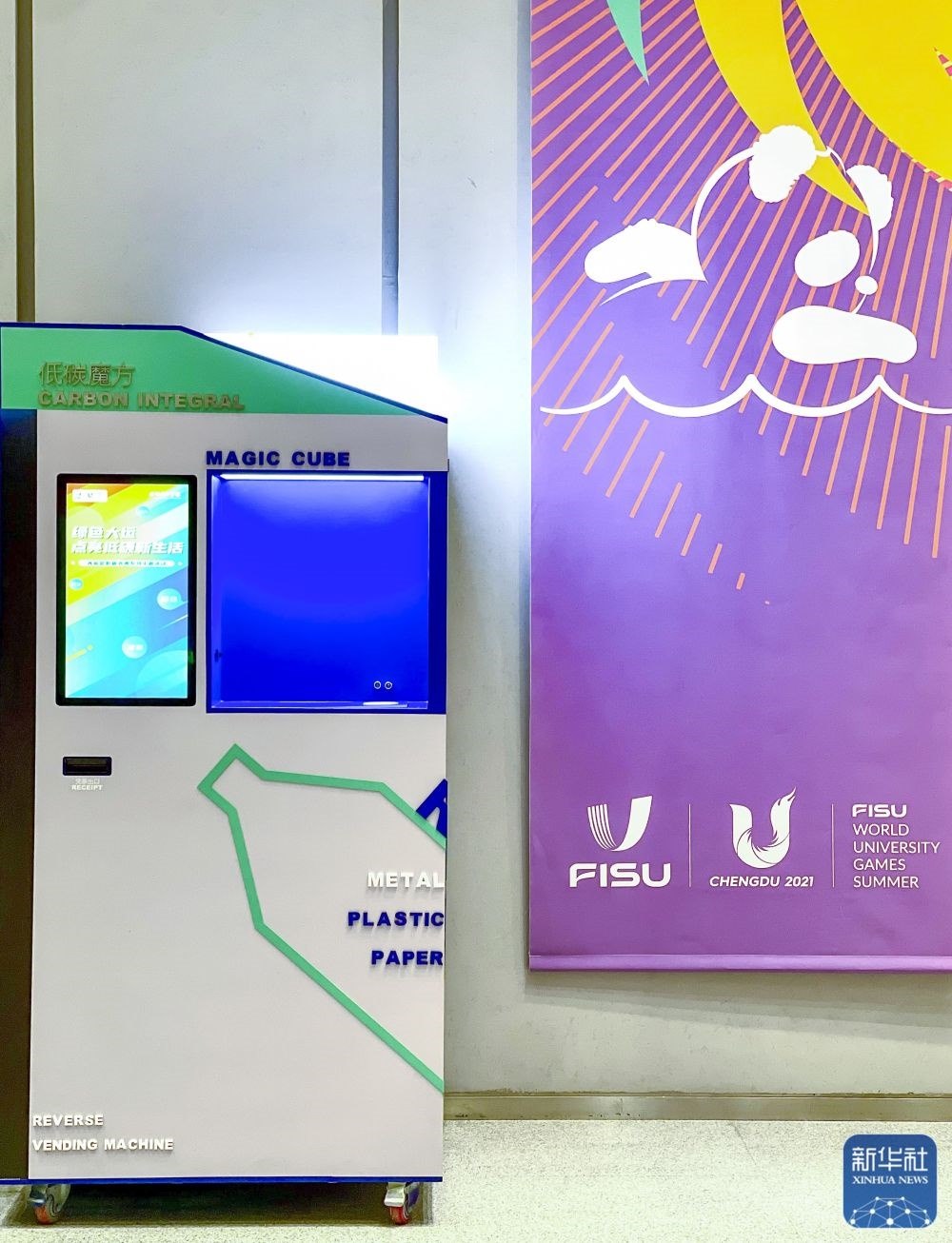 ↑這是6月28日在成都大運(yùn)會(huì)開(kāi)幕倒計(jì)時(shí)30天活動(dòng)現(xiàn)場(chǎng)拍攝的“低碳魔方”。新華社記者 沈伯韓 攝