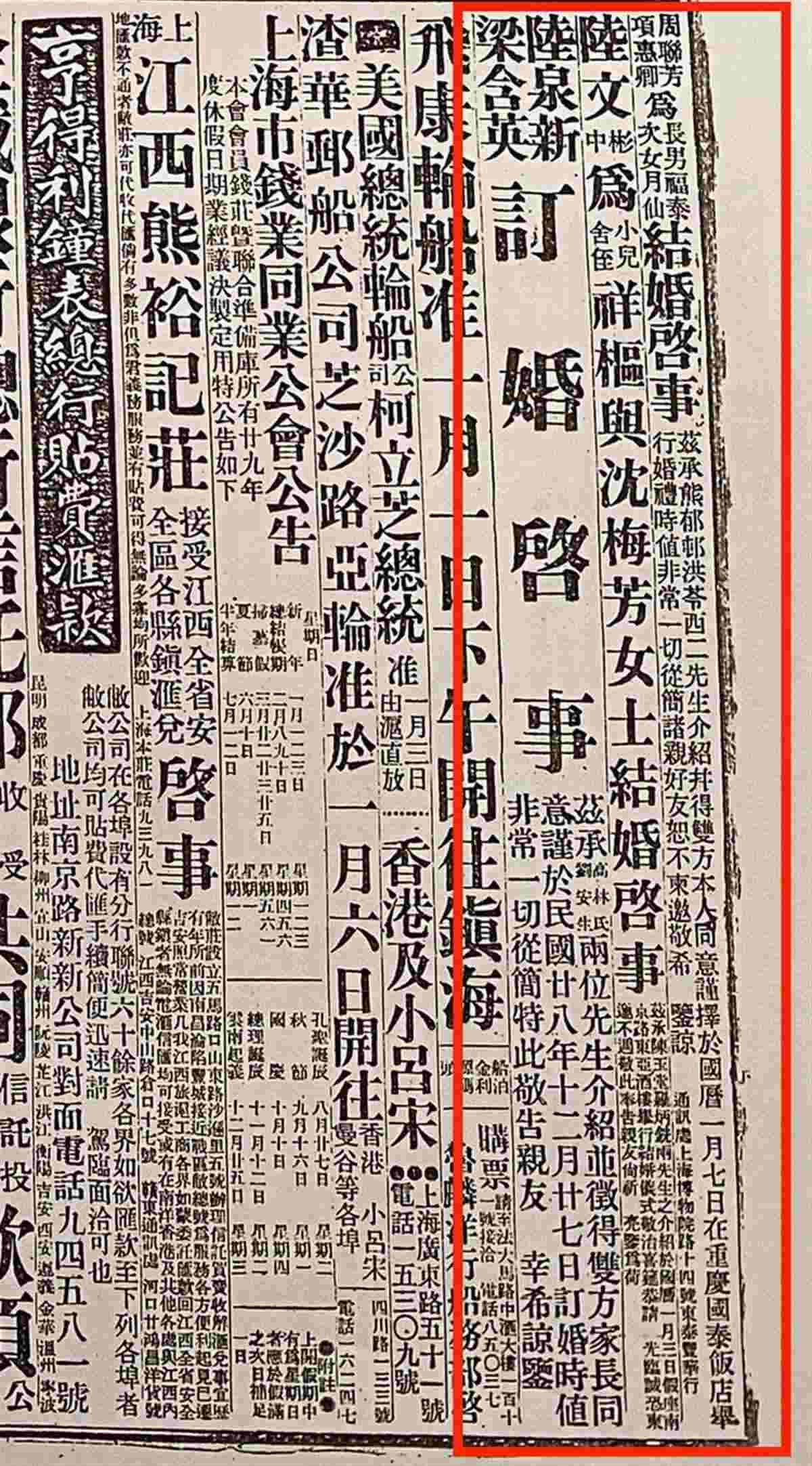 據(jù)了解,登報結(jié)婚最早在民國風(fēng)行。當時,婚姻法和婚姻登記制度并不完善,于是結(jié)婚時在報紙上公示成為一種約定俗成的習(xí)慣。一來知會了遠近親友,二來有一定法律效力,日后可以作為憑證。三來報紙便于長久保存,更具紀念意義。