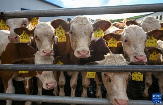 8月3日在扎魯特旗巨日合鎮(zhèn)拍攝的養(yǎng)殖戶代養(yǎng)的基礎(chǔ)母牛。