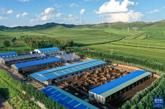 8月3日拍攝的扎魯特旗百順養(yǎng)殖專(zhuān)業(yè)合作社(無(wú)人機(jī)照片)。