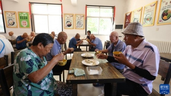 8月22日,老人在青縣曹寺鎮(zhèn)曹寺村的孝老食堂用餐。