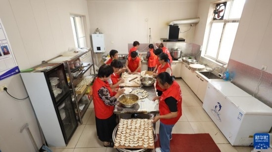 8月22日,青縣金牛鎮(zhèn)大鵓鴿留村孝老食堂的志愿者準(zhǔn)備餐食。
