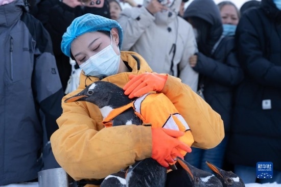 時(shí)值周末,哈爾濱極地公園的企鵝亮相戶(hù)外,上演冰雪巡游,吸引許多游客前來(lái)觀(guān)賞。目前正是黑龍江省哈爾濱市的冰雪旅游季。