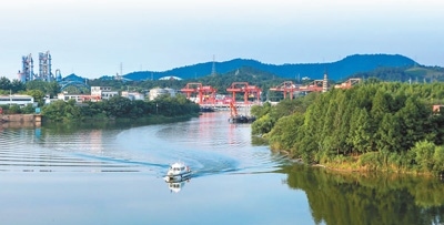 一艘水上執(zhí)法艇在安吉縣遞鋪街道西苕溪航道巡邏。圖為潘學康攝
