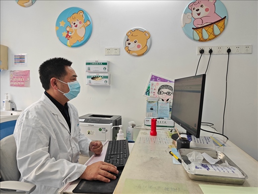 長(zhǎng)春市兒童醫(yī)院中西醫(yī)結(jié)合科主任薛斌在舒蘭市人民醫(yī)院兒科療區(qū)查房。受訪對(duì)象供圖