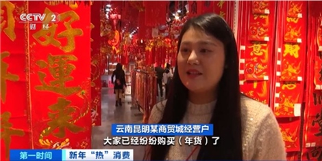 云南昆明某商貿(mào)城經(jīng)營(yíng)戶:從上個(gè)月開始,人們就已經(jīng)開始購(gòu)買年貨。燈籠、福字、對(duì)聯(lián),還有窗花、擺件都是最熱銷的產(chǎn)品。采購(gòu)高峰期從這個(gè)月開始,批發(fā)商已經(jīng)開始補(bǔ)貨,一直會(huì)持續(xù)到臘月二十八左右。
