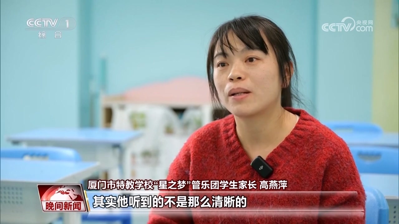廈門(mén)市特教學(xué)校“星之夢(mèng)”管樂(lè)團(tuán)學(xué)生家長(zhǎng) 高燕萍:其實(shí)他聽(tīng)到的不是那么清晰的,但是他會(huì)覺(jué)得這個(gè)聲音很美,他用手語(yǔ)告訴我,他覺(jué)得很美。