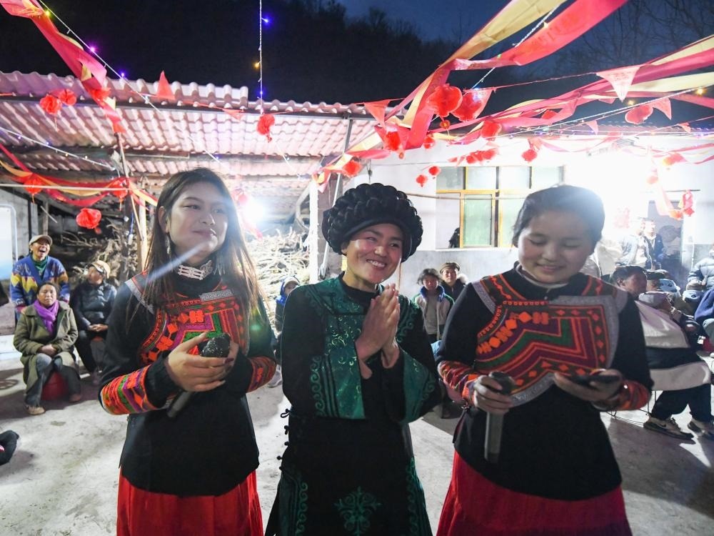 巫其石且的大哥巫其拉鐵家有好幾個(gè)女兒。正是拉鐵的二女兒巫其小梅在社交媒體上認(rèn)出新華社記者發(fā)布的照片拍的是巴木,才讓新華社記者最終找到了巴木。2日,是小梅的姐姐巫其小冰出嫁的日子,青年男女載歌載舞,給新人以祝福。
