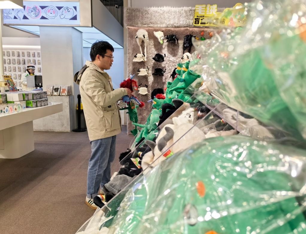 2月2日,游客在甘肅省博物館文創(chuàng)商店挑選文創(chuàng)產(chǎn)品。新華社記者 何問 攝
