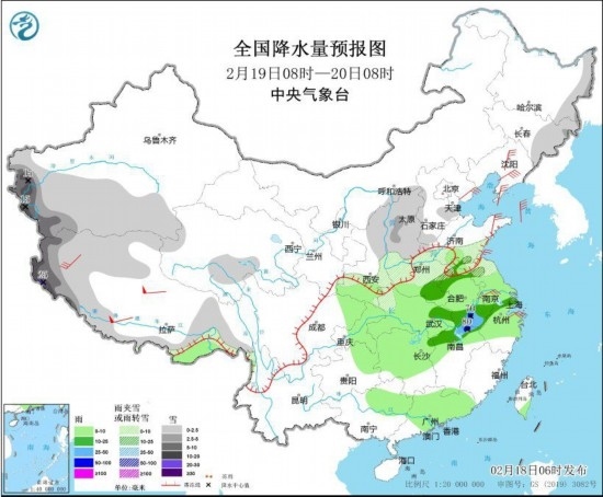 全國降水量預(yù)報(bào)圖(2月18日8時(shí)-19日8時(shí))