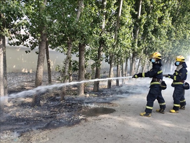 圖三:2023年5月2日,河南省濟(jì)源市消防救援支隊濟(jì)瀆路特勤站在處置飛絮引發(fā)的火情(來源:新華社)