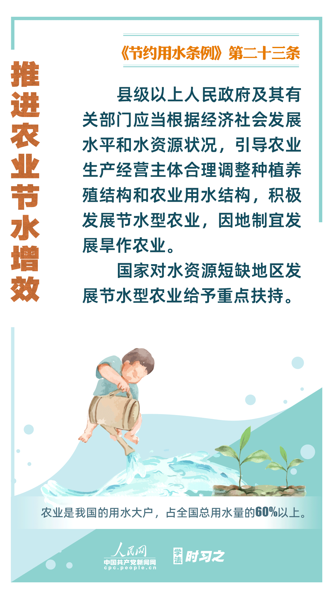 《節(jié)約用水條例》(以下簡(jiǎn)稱《條例》)將于2024年5月1日起施行,這是我國(guó)首部節(jié)約用水行政法規(guī)。節(jié)約用水,是解決我國(guó)水資源短缺問題的根本措施,《條例》以水資源可持續(xù)利用為目標(biāo),建立健全節(jié)水制度政策體系,以法治方式和法治途徑實(shí)現(xiàn)水資源節(jié)約集約高效利用,促進(jìn)全社會(huì)節(jié)約用水。
