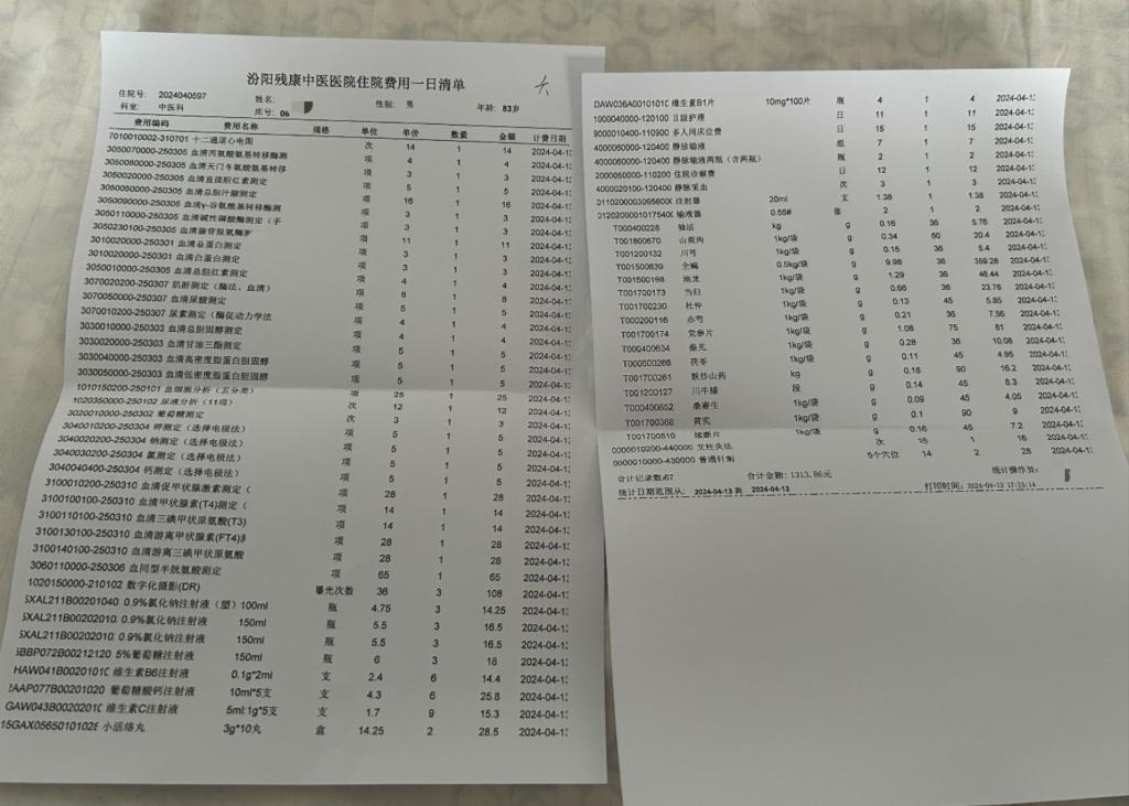 之后,在這名老人當(dāng)日的“住院費(fèi)用一日清單”上,憑空出現(xiàn)了“心電圖”“血液檢測(cè)”“尿液分析”等多個(gè)并沒有進(jìn)行檢查的檢測(cè)項(xiàng)目,總計(jì)花費(fèi)1313.86元?!皩?shí)際檢查也就300塊錢左右?!币晃粌?nèi)部人士透露。
