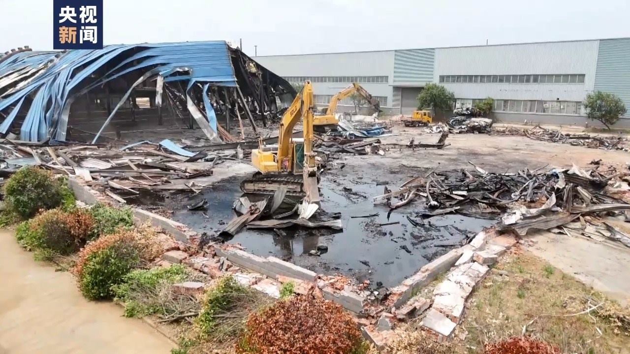 5月25日晚上7點(diǎn)多,總臺記者按照知情人的指引,趕往富信石油倉庫所在地,全椒經(jīng)開區(qū)經(jīng)二路東側(cè)的三期標(biāo)準(zhǔn)化廠房調(diào)查。此處共有6棟廠房,占地42畝,于2012年建成,廠房歸全椒百盛金屬科技有限公司所有,現(xiàn)租賃給當(dāng)?shù)厮募移髽I(yè)使用。發(fā)生火災(zāi)的2號廠房,目前已被部分拆解。環(huán)境監(jiān)測人員正在現(xiàn)場提取污水樣本。一旁的庫房內(nèi)仍然堆積了許多裝滿不明液體的塑料桶。空氣中彌漫著刺鼻的化學(xué)品氣味。
