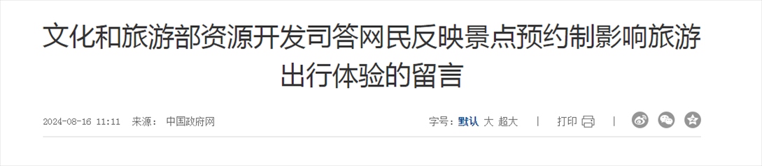 對(duì)此,文化和旅游部資源開發(fā)司8月16日在中國政府網(wǎng)上答復(fù):網(wǎng)民反映的景區(qū)預(yù)約問題,文化和旅游部多次作出部署并提出要求,一是所有景區(qū)均保留人工窗口,最大限度滿足游客參觀游覽需求;二是在承載量容許情況下,保障臨時(shí)到訪游客和老年人等群體入園需求;三是要求常年預(yù)約空余量較大的景區(qū)不實(shí)行預(yù)約;四是實(shí)施線上購票預(yù)約的,要求完善預(yù)約措施,優(yōu)化預(yù)約程序,盡可能減少游客個(gè)人信息采集。