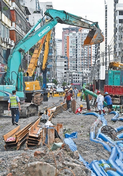 9月7日,海南省海口市工作人員在加緊抽排城市雨水。新華社記者 郭 程攝