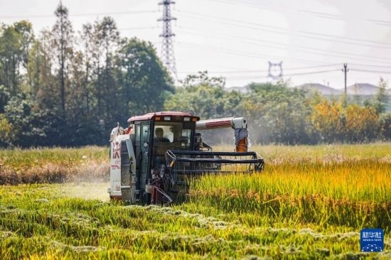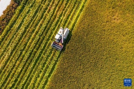 近日,浙江省湖州市吳興區(qū)東林鎮(zhèn)萬(wàn)畝稻田迎來(lái)豐收季,當(dāng)?shù)胤N糧戶(hù)搶抓農(nóng)時(shí),趁著天氣晴好搶收水稻,確保顆粒歸倉(cāng)。目前,東林鎮(zhèn)全鎮(zhèn)水稻種植面積20000余畝。