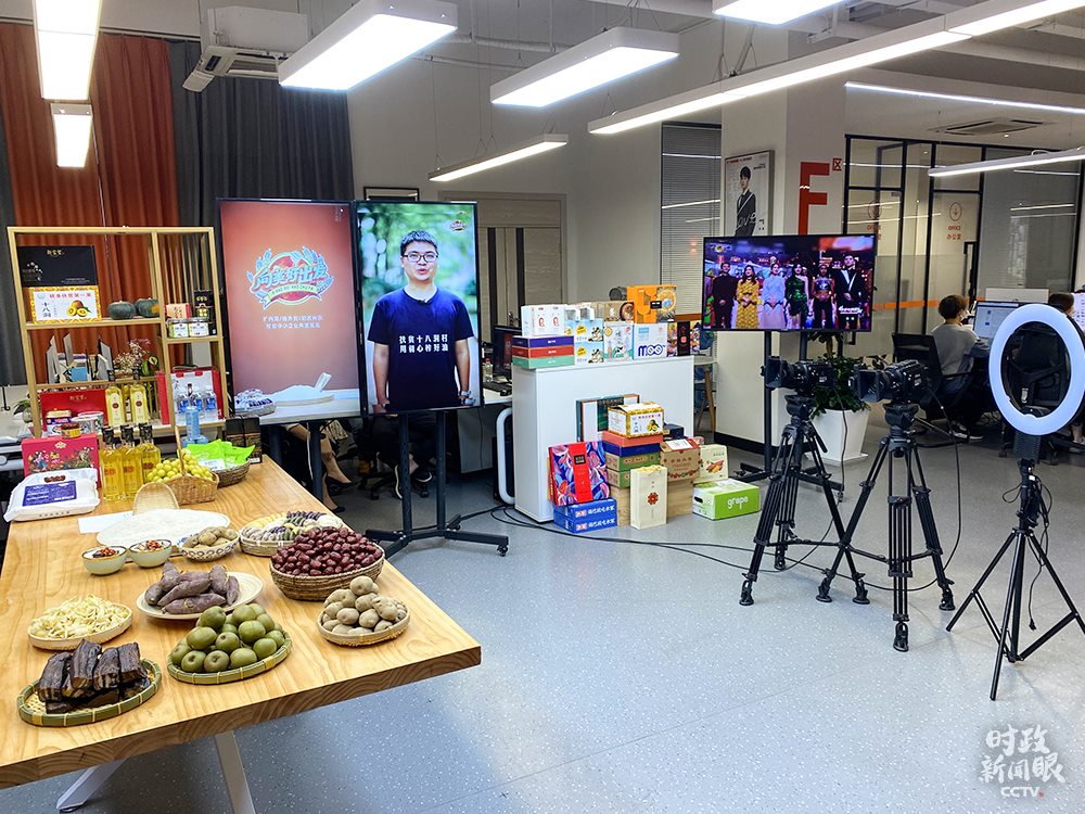 △園區(qū)正準(zhǔn)備做扶貧農(nóng)產(chǎn)品銷售直播。(總臺(tái)央視記者郭曉龍拍攝)