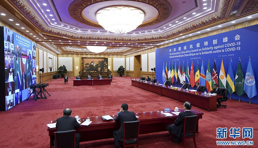 6月17日晚,習(xí)近平在北京主持中非團結(jié)抗疫特別峰會并發(fā)表題為《團結(jié)抗疫 共克時艱》的主旨講話。 新華社記者 丁海濤 攝