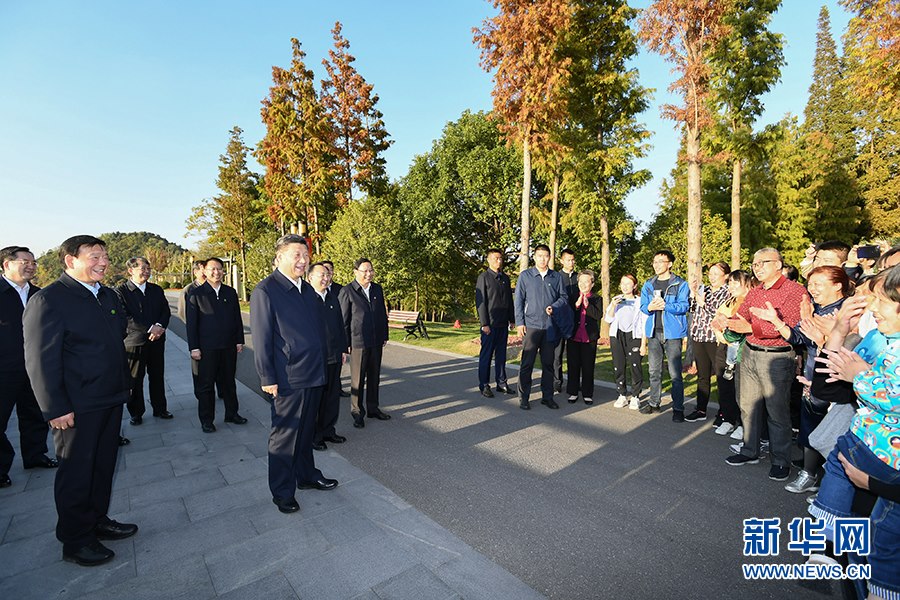 11月12日至13日,中共中央總書記、國家主席、中央軍委主席習近平在江蘇考察。這是13日下午,習近平在揚州市運河三灣生態(tài)文化公園考察時,同市民群眾親切交流。新華社記者謝環(huán)馳攝