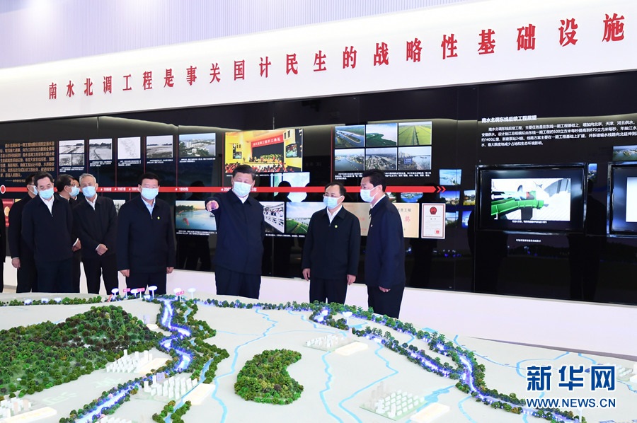 一個大型沙盤模型直觀地呈現了中國大地上水資源大范圍大規(guī)模跨區(qū)域調配的壯闊景象,習近平總書記駐足凝望——