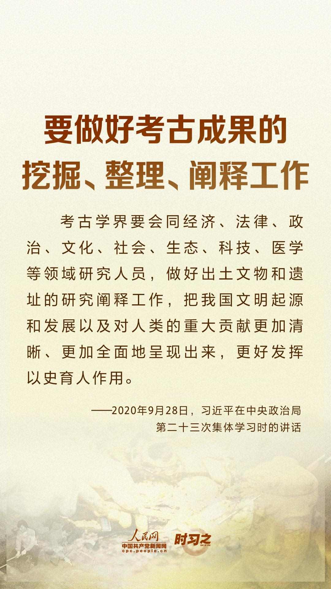 做好考古和歷史研究工作,努力建設(shè)中國(guó)特色、中國(guó)風(fēng)格、中國(guó)氣派的考古學(xué),習(xí)近平始終高度重視。