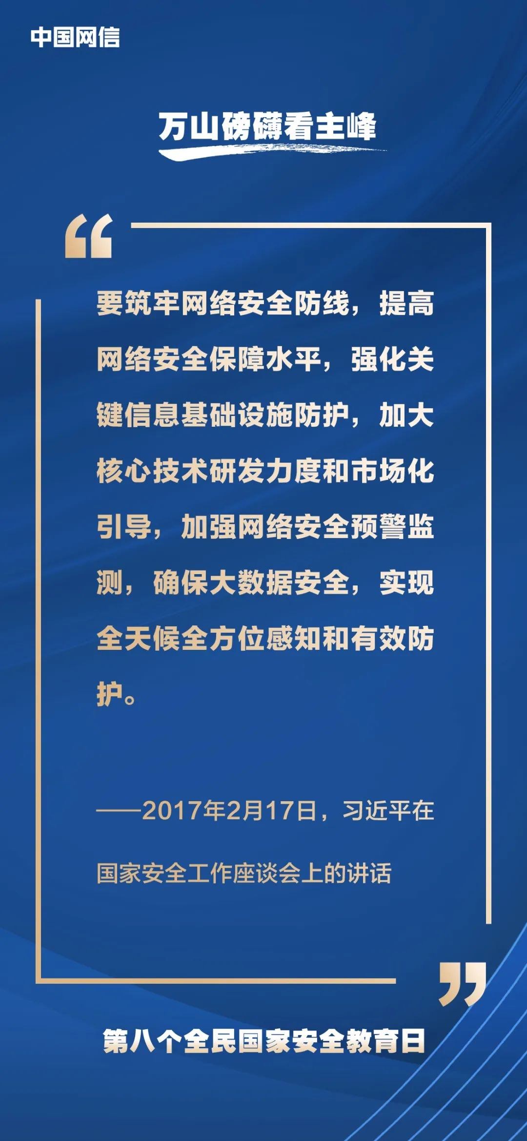 國家安全是安邦定國的重要基石,維護(hù)國家安全是全國各族人民根本利益所在。2023年4月15日是第八個(gè)全民國家安全教育日,今年的主題是“貫徹總體國家安全觀,增強(qiáng)全民國家安全意識(shí)和素養(yǎng),夯實(shí)以新安全格局保障新發(fā)展格局的社會(huì)基礎(chǔ)”。沒有網(wǎng)絡(luò)安全就沒有國家安全,以下摘取習(xí)近平總書記關(guān)于“網(wǎng)絡(luò)安全”的重要論述,與你一起回顧學(xué)習(xí)。